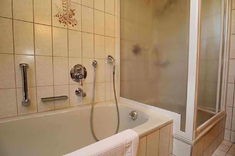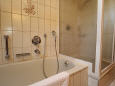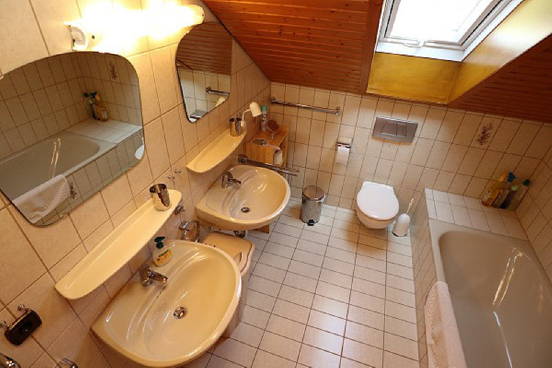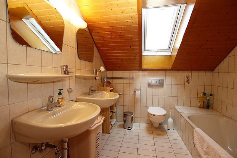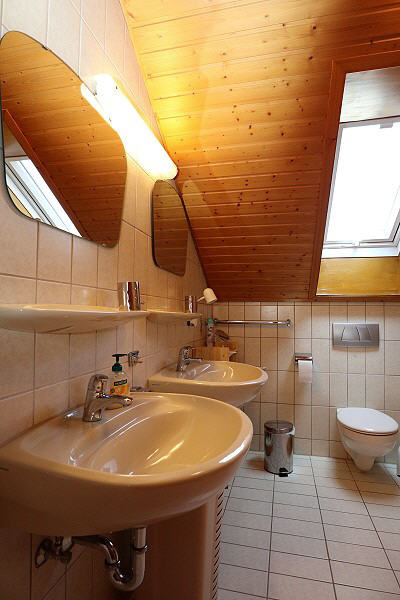 - Im schönen Bad erwartet Sie Dusche, 2 Waschbecken mit Spiegeln und Fön sowie ein WC.