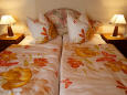 - Das Schlafzimmer ist geschmackvoll eingerichtet mit einem Doppelbett mit ausgezeichneten Matratzen und Decken nach Wahl (Sommer, Winter, Daunen, Seidenbetten, Allergiker) sowie einem großen Holzschrank.